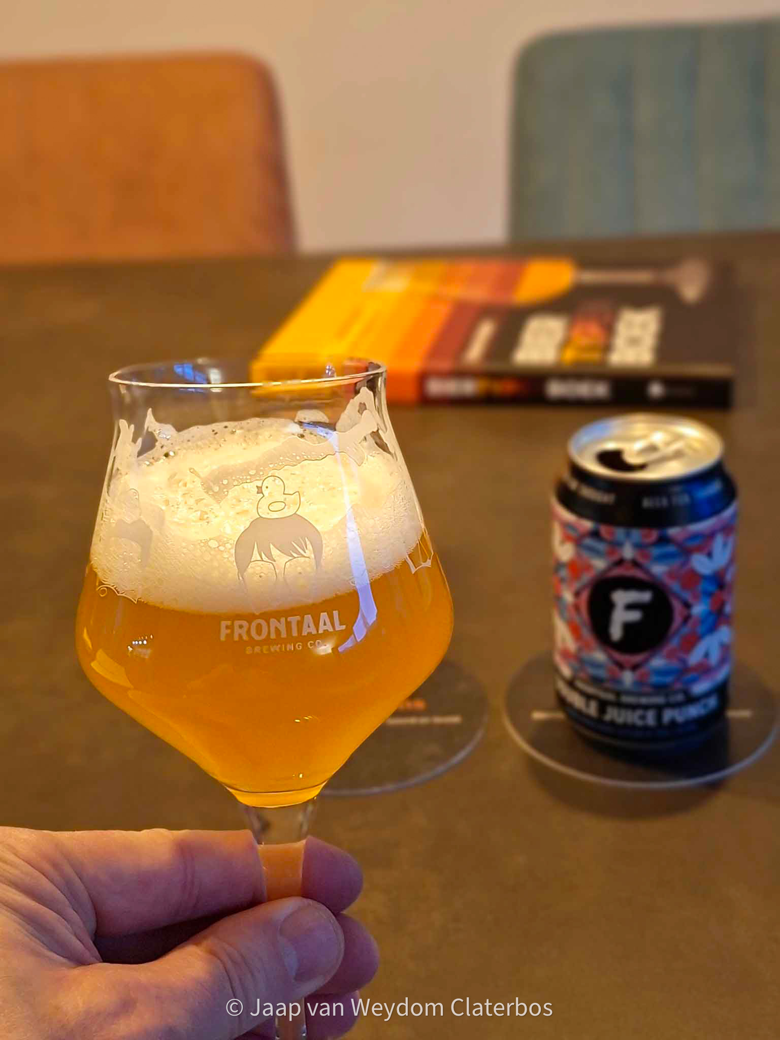 Vorig jaar bestond De Bierkoning in Amsterdam 40 jaar. Lang niet geweest, dus een goede rede om weer eens langs te gaan. Heb nog een lijst met bierglazen die ik graag wil hebben. Oogst: 25 cl. Frontaal, Tripel D’Anvers en Vicaris. Meteen ook één blik Frontaal gekocht: Daybreak Cold Brew Coffee Stout en later bij Albert Heijn: Double Juice Punch. De laatste is een wazig geel bier met een fris tropische fruit smaak. Met alc. 8,5% vol. een stevige NEDIPA, die het bier hierdoor een voller en romiger karakter geeft. Genoten met een restant Hollandse Blauwaderkaas van de koe erbij.