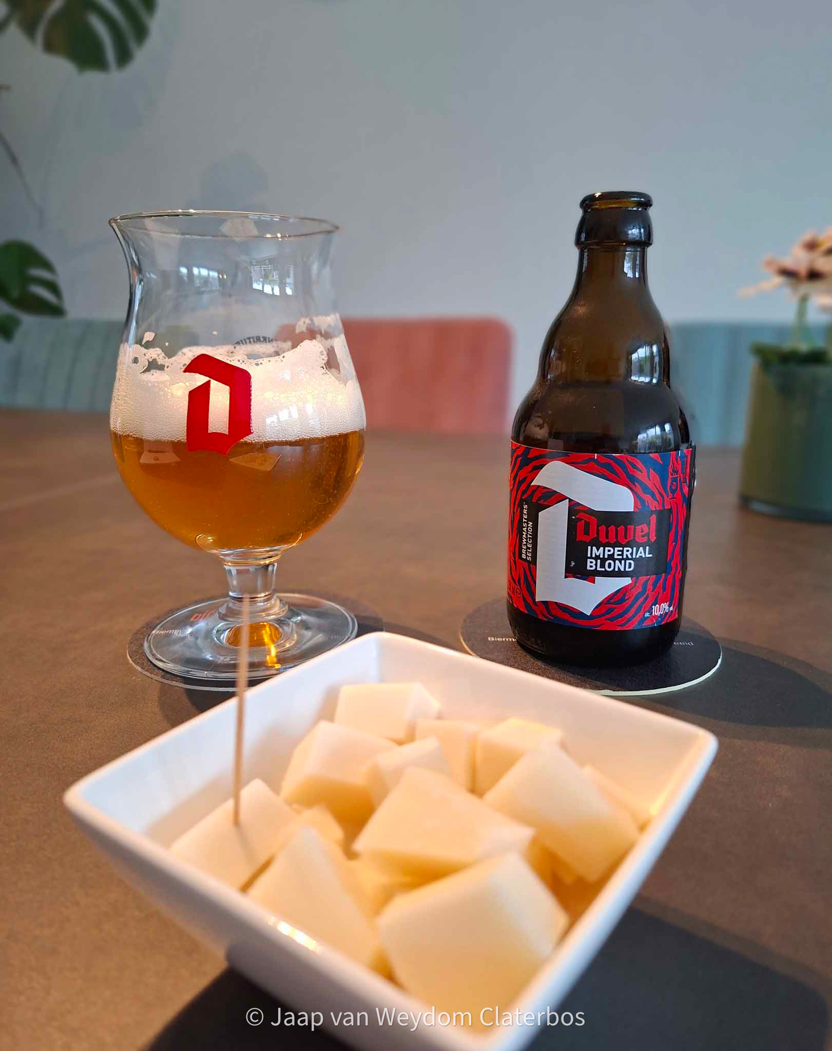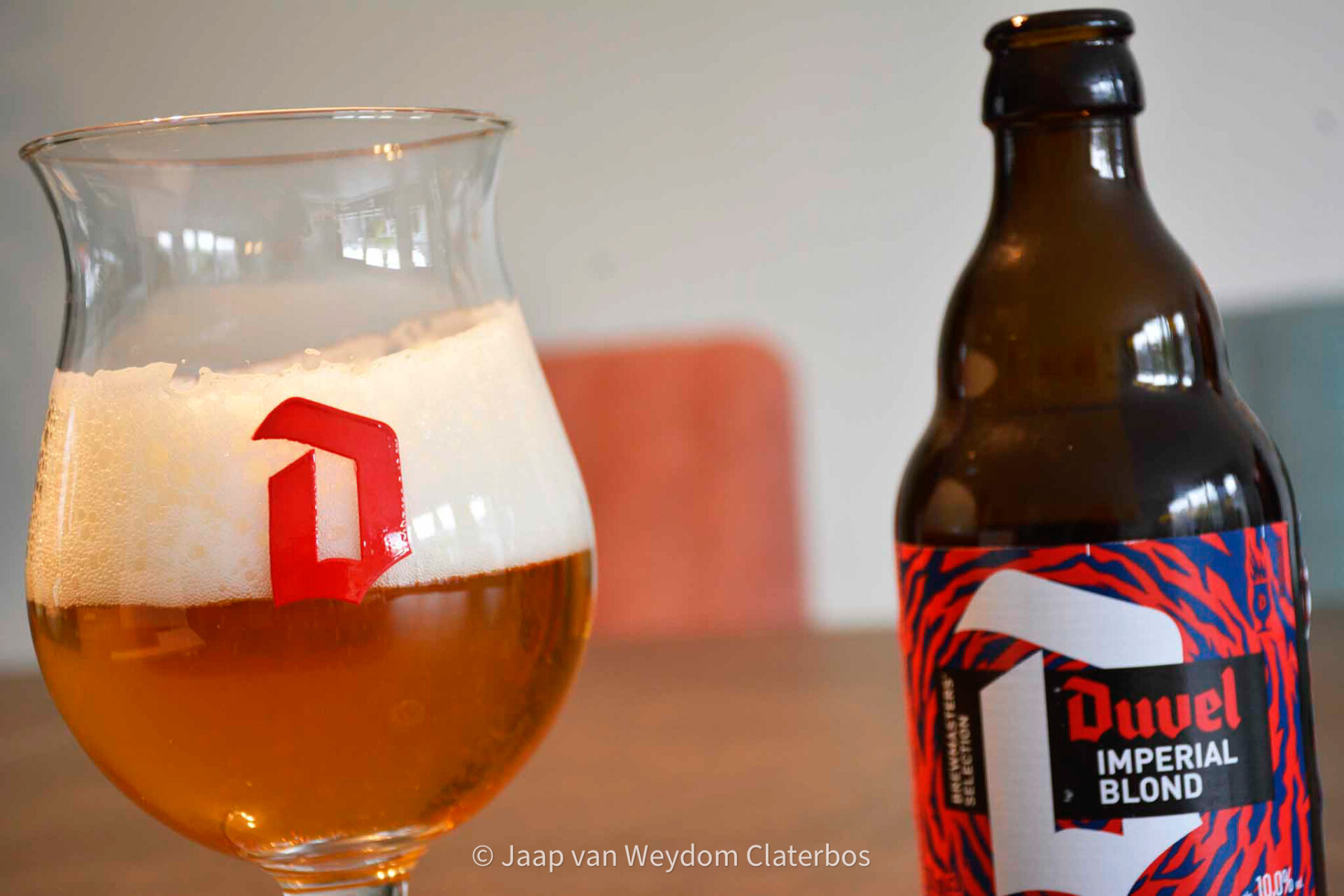 Ik was opzoek naar Duvel Imperial Blond, gebrouwen in een beperkte oplage. Kon het nergens vinden, totdat ik bij slijterij Ton Overmars kwam aan de  Beukenweg Amsterdam voorheen Mitra waar ze een beperkt bierassortiment hebben, maar wel de Imperial Blond van Duvel te koop is. Goudblond maar net iets donkerder dan de originele Duvel. Fluweelzacht, mooi in balans en met alc. 10% vol. gedoseerd drinken. Het is een mooi bier, maar niet opvallend anders dan het iconische sterk blond Duvel bier.