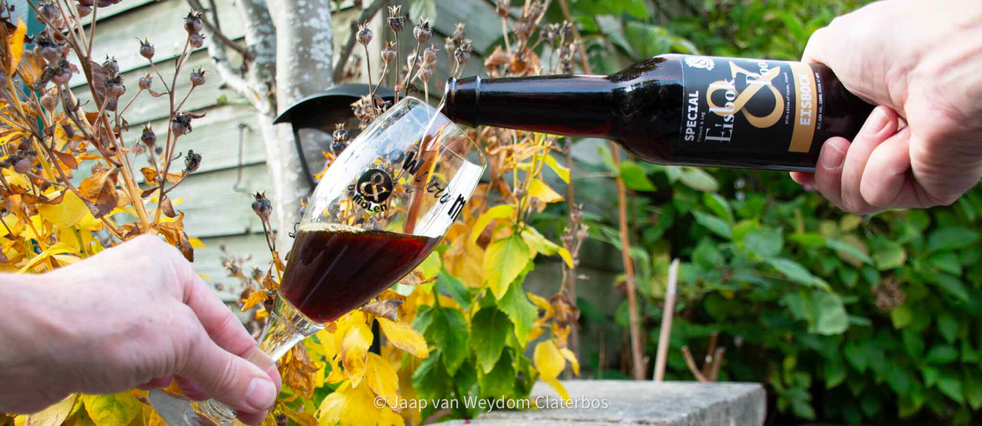 Eisbock & Poot is een donkerbruin Bordeauxrood bier. Geen sterke schuimlaag ontwikkeling.