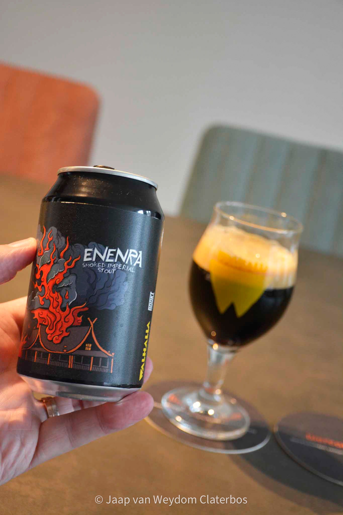 Ik heb al wat gekke bieren gedronken, niet allemaal met even veel genoegen. Bij dit bier is er één smaak die overheerst. Maar het blijft nog steeds een verdomd lekker bier. Eigenlijk is het geen verassen, de naam van dit bier ENENRA Smoked Imperial Stout, verklapt het al. Toen ik het blik opentrok rook ik het, het glas vulde en het bier onder mijn neus hielt rook ik het. Rook! Mooi donker zwarte kleur, met onder aan het glas nog licht bruinrood. Stevige beige schuimlaag. Aroma van rook, gebrande tonnen en in de verte zoet. Volle romige sterk rokerige smaak. Licht zoet en bitter. Weinig koolzuur bruising. Walsen in de mond en de rook komt nog meer vrij en ook de bitters. Zoete rokerige afdronk, in de nasmaak bitter en de rook gaat nog lang door. Dus langzaam drinken en na elke slok een pauze inlassen. Dat is de Hollandse Blauwaderkaas van de koe een welkome afleiding. De gerookte haver, appels & pepers zijn gerookt bij Rokerij Rookt. Wat een traktatie zo op vrijdagmiddag!