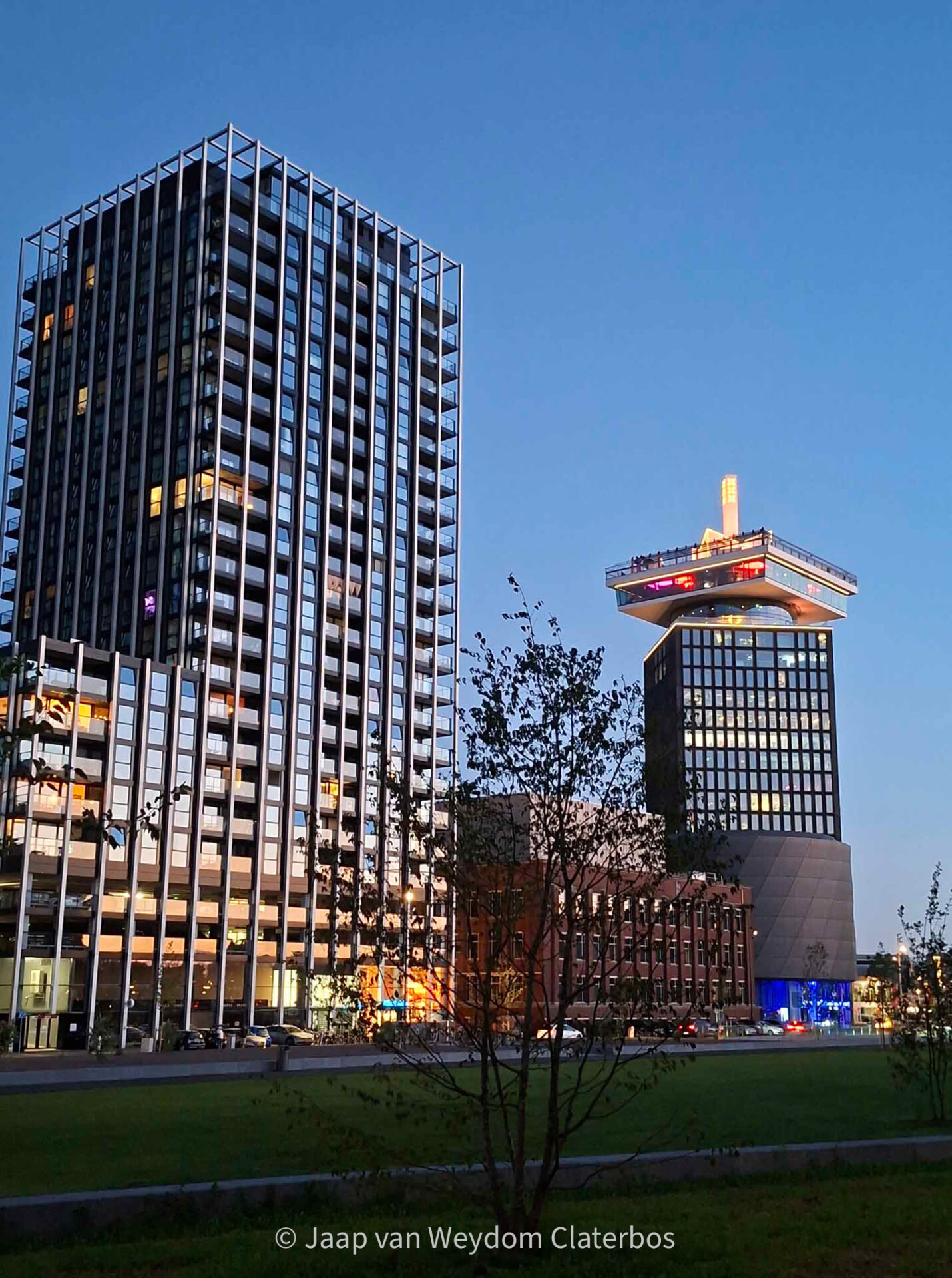 Kaasplank en worstplank. De afsluiter was een knaller. Enenra Deamon #22 Imperial stout with Smoked Appels. En gerookt was het. Rookbom. Ook een mooi etiket op het blik. Daar moest er één van meegenomen worden, plus één blik SET Pasionfruit+Mango+Guava Sour en natuurlijk het Walhalla glas. Toen we terug liepen naar de veerpond was de avond alle gevallen en hadden prachtig uitzicht op een strak blauwe lucht en de verlichte A’DAM Toren. Zeker voor herhaling vatbaar. Walhalla bedankt!