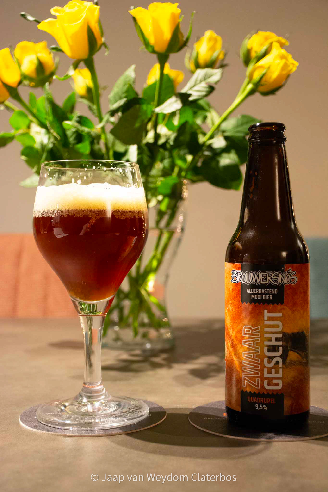 Op vrijdag een verrassend frambozenbier gedronken van Kasteel Brouwerij Vanhonsebrouck. Kasteel Rubus Framboise. Mooi paars etiket en stevig zoet van de frambozen. Mijn vrouw nam een slok van dit bier en vond het meteen lekker. De Volgende dag meteen 3 flessen bij Dirck III gekocht. Daar mocht op zaterdag wel even een ander biertypen tegenover staan. Tijdje geleden de Quadrupel Julequad van Brouwerij Nønge Ø gedronken. Wat mij betreft een vrij alcoholische Quadrupel. Bij mijn laatste bezoek aan Mitra Almere Buiten, waar ik 11 bieren had gekocht, zat ook een andere Quadrupel. Zwaar Geschut van Craftbier Brouwerij Brouwernös uit Groenlo. Zwaar Geschut is een prijswinnende Quadrupel van alc. 9,5% vol. met een lichte toets van honing en karamel. Eurpean Beer Challange 2015 Gold | World Beer Awards Netherlands Silver | Dutch Beer Challange Bronzen Medaille 2019.